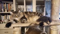 ... Unsere zwei Tiger sind wahre Schätze. Sie bringen uns zum Lachen, sie schmusen viel, bewachen uns (im Winter haben sie 24-7 Wache gehalten, wenn einer von uns krank war) ... (Sweet Muffin of Fairy Dance, S-Wurf, und Tiny Daisy of Fairy Dance, T-Wurf) |